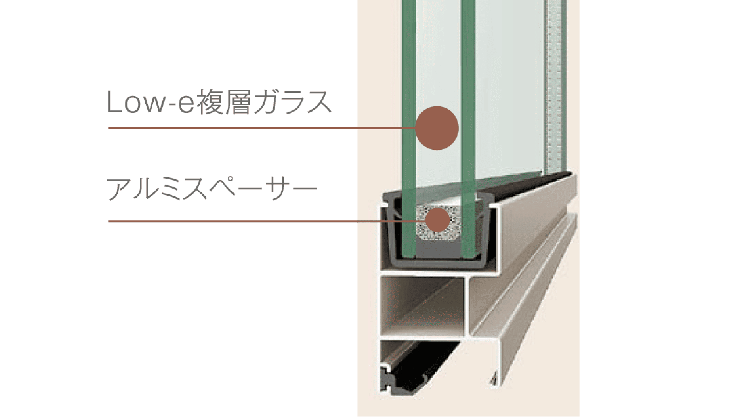 特殊金属膜と中空層のダブル効果で一般複層ガラスの約2.0倍の高い断熱性を発揮する「Low-e複層ガラス」。太陽熱を取り込みながら、室内の熱を逃がしません。