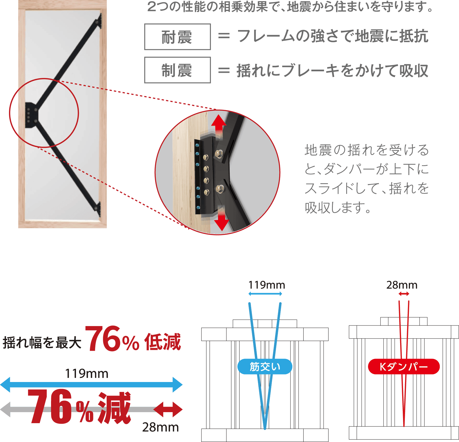 耐震と制震の相乗効果を発揮する耐力壁「Kダンパー」